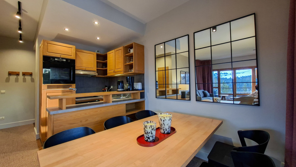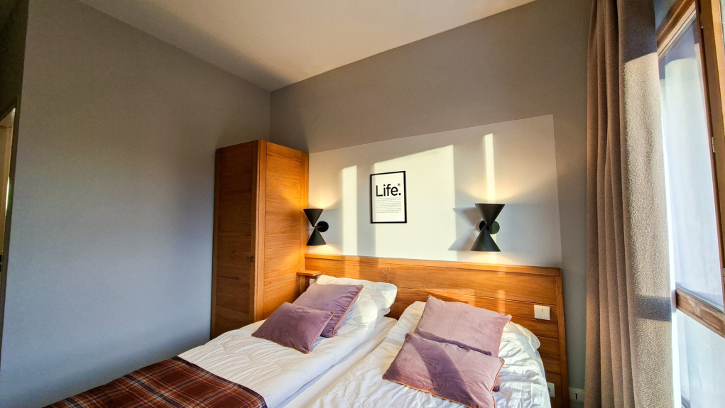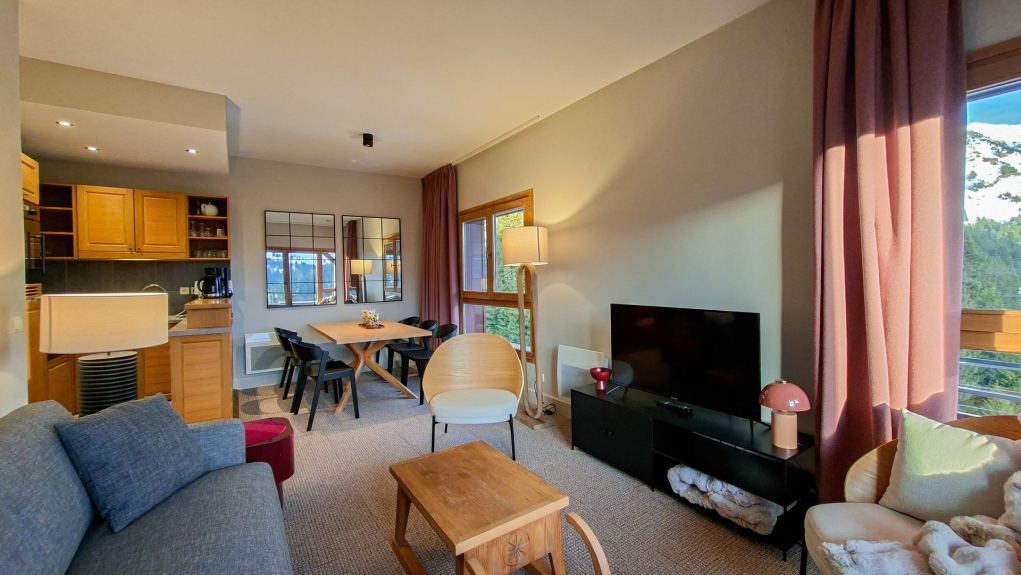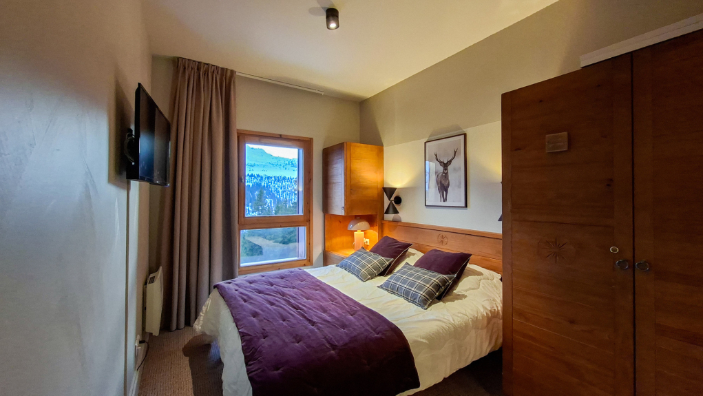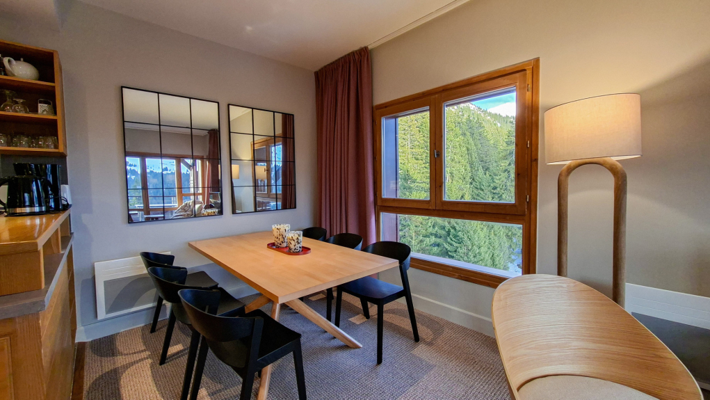 Residencia turística de 5 estrellas situada en el barrio de Flaine Mont Soleil a pie de pistas y a unos 400 metros de los comercios. Plazas de aparcamiento cubiertas. Ascensores. Taquillas para esquís.