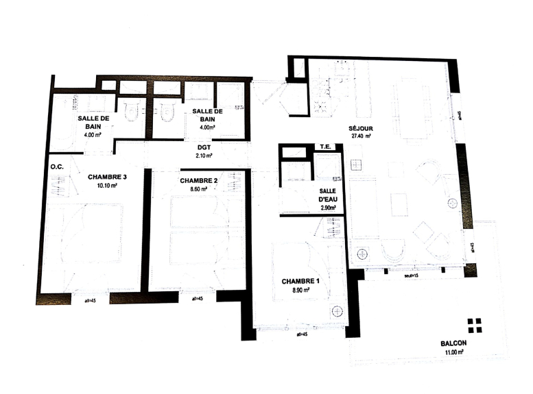 Apartamento de 4 habitaciones confort sur 67 m2 en el segundo piso con magníficas vistas y gran balcón