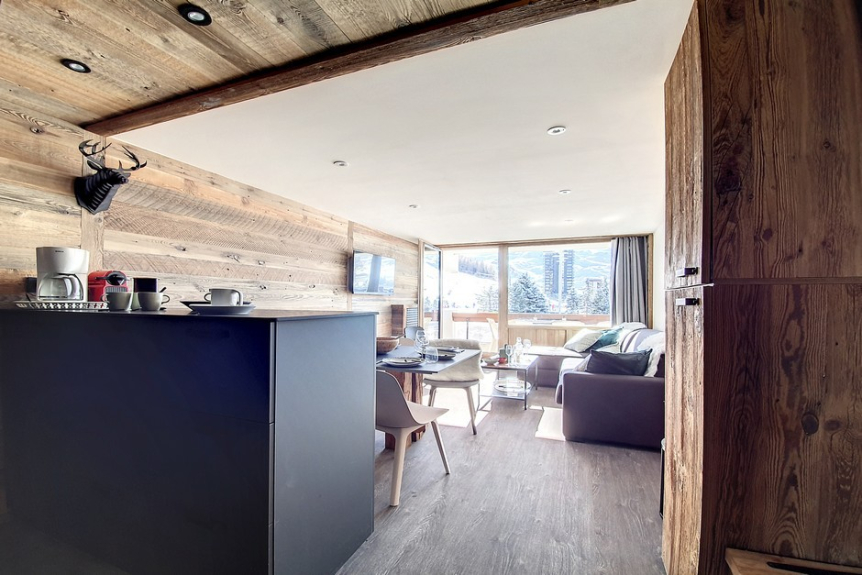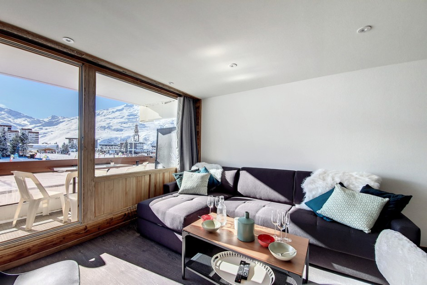 Tiene acceso directo a las pistas y conduce directamente al centro comercial situado en el sótano del edificio.