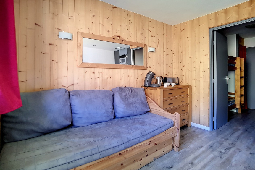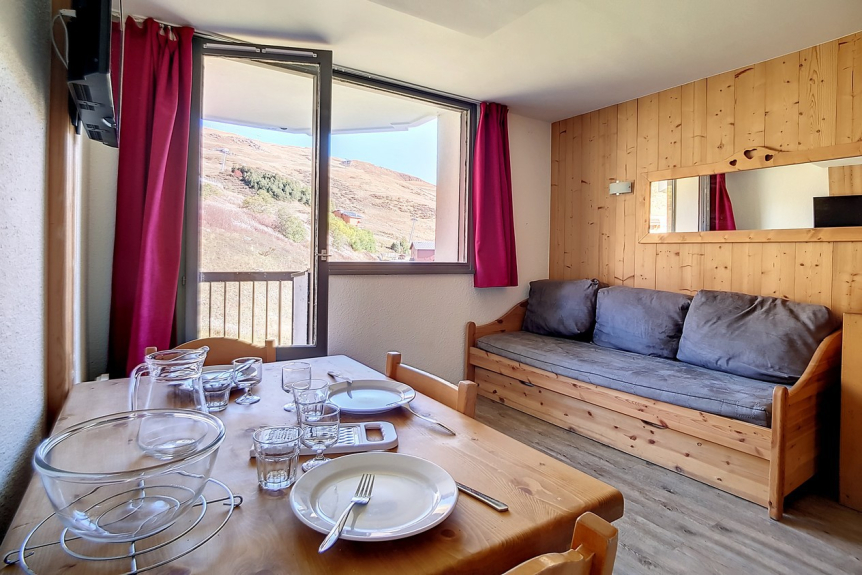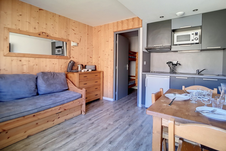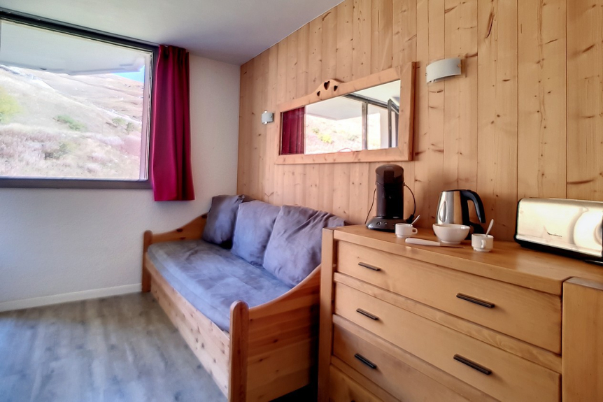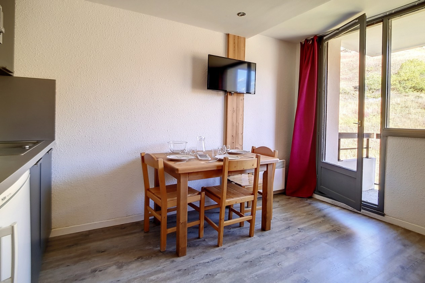 Estudio con rincón de montaña de 18m² para 3 personas, situado en la 2ª planta con balcón orientado al Este.