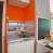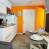 Cocina equipada con 2 placas de vitrocerámica, nevera, microondas, cafetera y hervidor de agua.