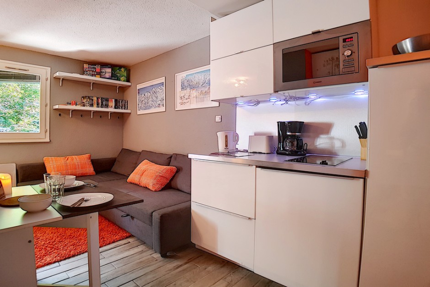 Un puente peatonal frente a la residencia le permite llegar al barrio de Bruyères, donde encontrará restaurantes, tiendas, una oficina de turismo, un espacio acuático y de bienestar, un cine, una pista de trineo, una escuela de esquí y una guardería.