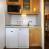 nevera, cafetera, tostadora y hervidor eléctrico.