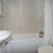 Cuarto de baño con bañera, secador de toallas y aseo.