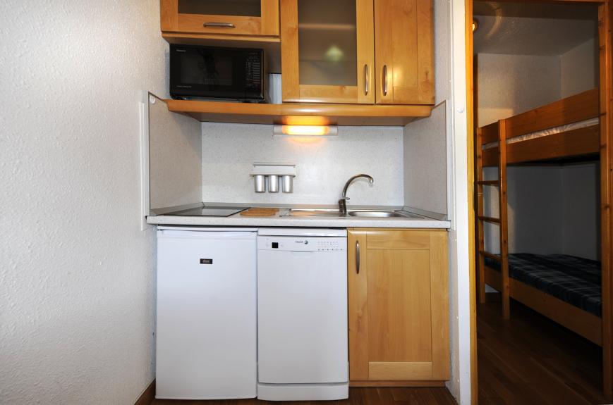 Estudio con rincón de montaña de 20m² para 3 personas. Situado en la 3ª planta, tiene un balcón orientado al sur.