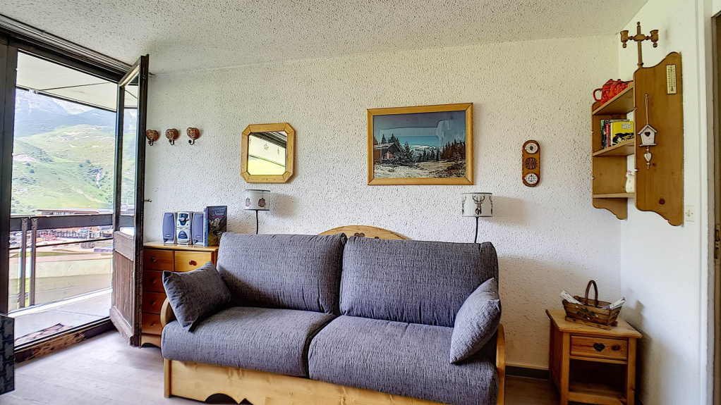 Salón: 1 sofá cama para 2 personas. Equipado con un televisor y un reproductor de DVD