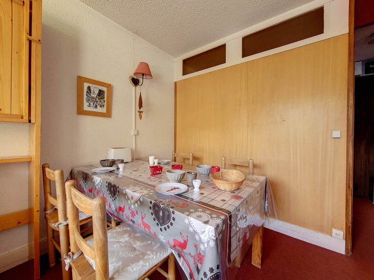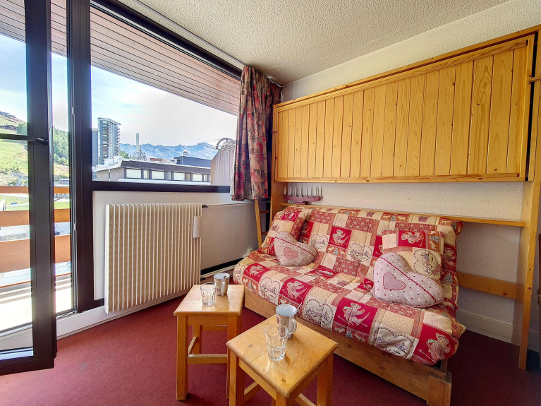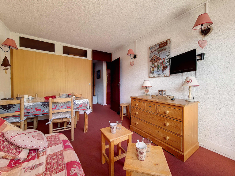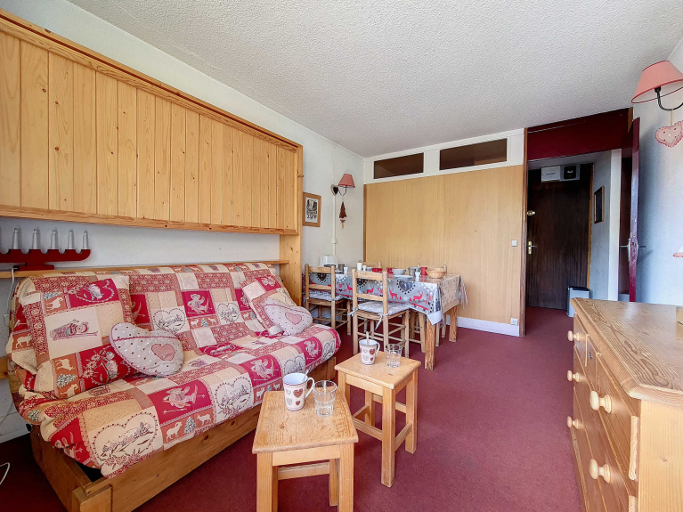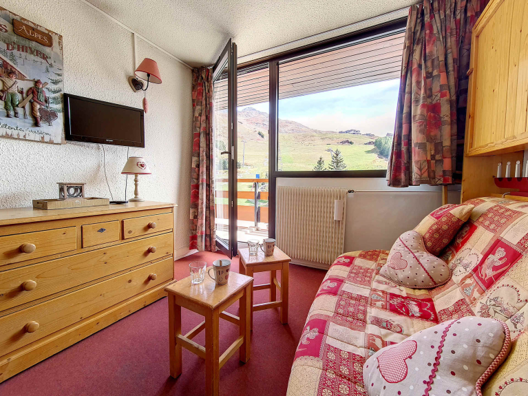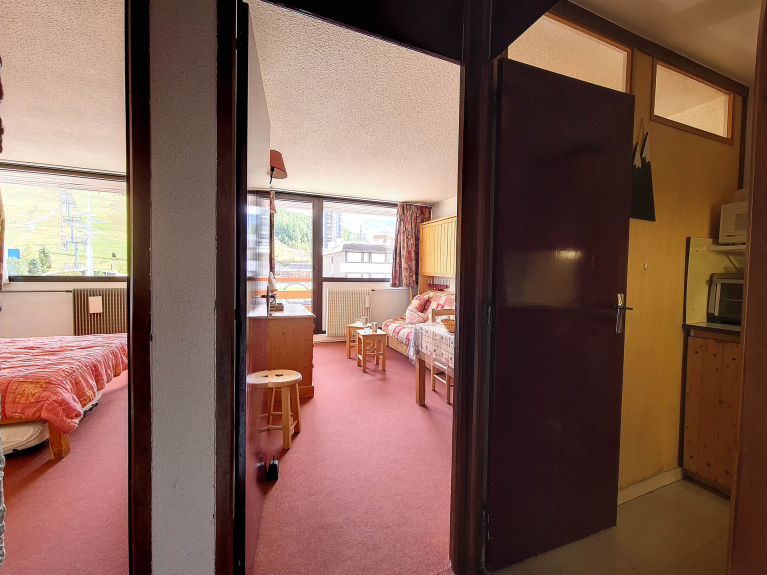 Apartamento espacioso y luminoso compuesto de 2 piezas incluyendo 1 dormitorio: 35 m² para 4 personas. Se encuentra en la 3ª planta de una residencia ski in/ski out, cerca de los remontes y a 20 m del punto de salida de las FSE, con acceso a todos los servicios de la estación. Tiene un gran balcón en el lado de las laderas, orientado al sureste.