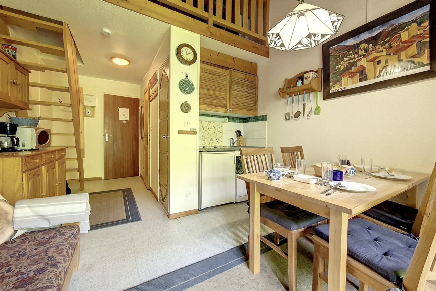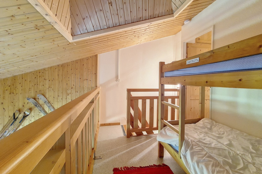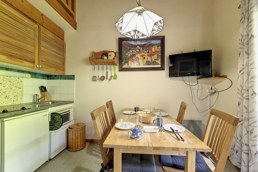 Piso de 33,50 m² con balcón Este, compuesto de 3 habitaciones incluyendo 1 dormitorio y 1 rincón de noche en entresuelo. Situado en la 4ª planta con ascensor, el piso tiene capacidad para 4 personas.