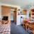 Cocina integrada con 2 placas de cocción, mini-horno, microondas, nevera, tostadora, hervidor y cafetera.