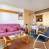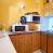 Cocina independiente equipada con 2 placas de cocción, un frigorífico, un microondas y un mini horno, tostadora, hervidor y cafetera.