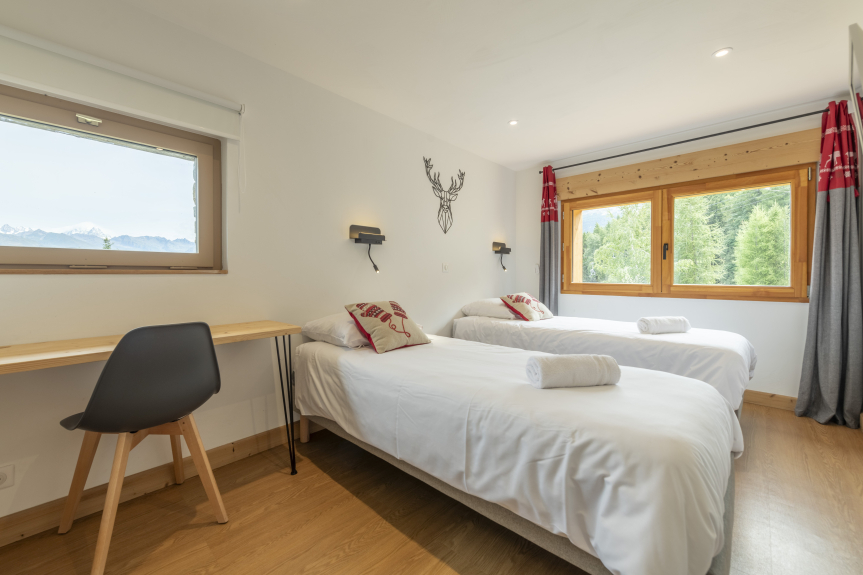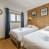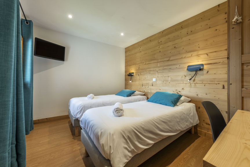 6 habitaciones están equipadas con 2 camas de 80*200 (ajustables en camas individuales o dobles), una habitación contiene 3 camas de 80*200.