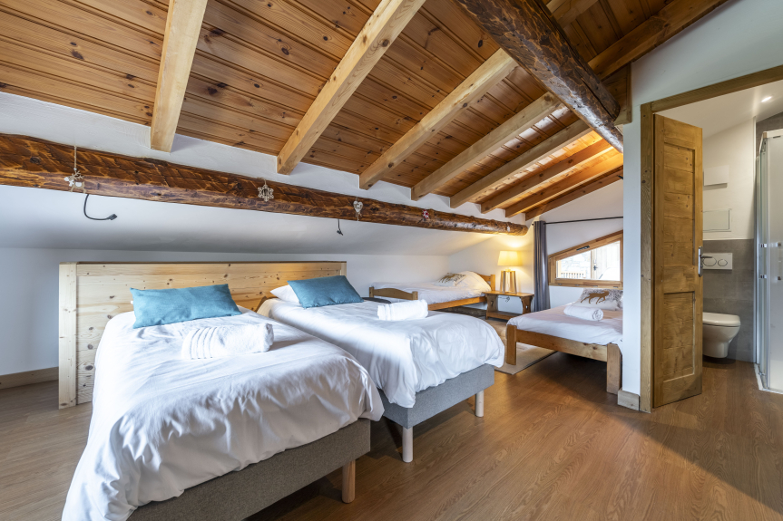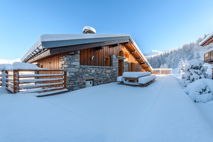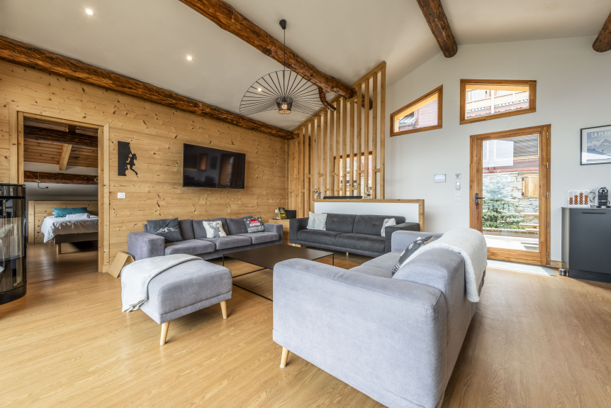 Chalet para 15 personas (7 dormitorios) con 6 baños en el pueblo de Montchavin-La Plagne (Les Coches). Esquí de entrada, esquí de salida en la zona de esquí de La Plagne-Les Arcs.