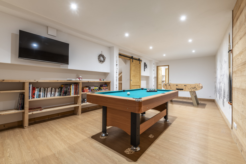 Disfruta de la sala de juegos (billar/fútbol de mesa) y de la zona de televisión para tus noches.
