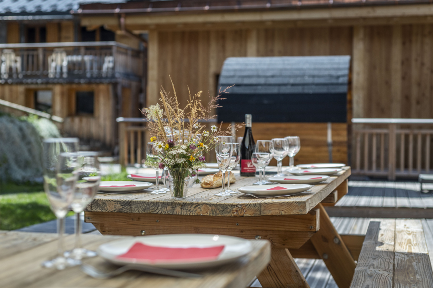 Amplio salón-comedor y cocina abierta con un gran ventanal con impresionantes vistas al Mont Blanc y balcón.