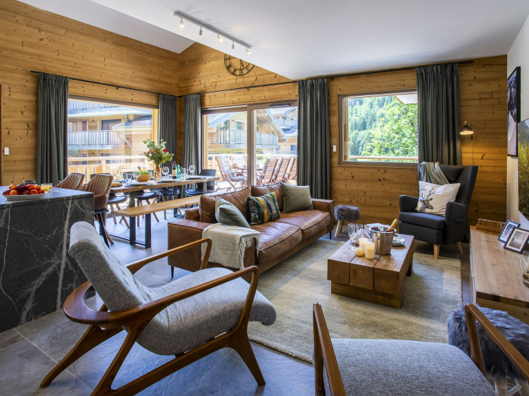 Al estar situado en la tercera planta de un edificio, en un rincón tranquilo del valle de Abondance, su terraza ofrece espléndidas vistas del bosque y las montañas circundantes.