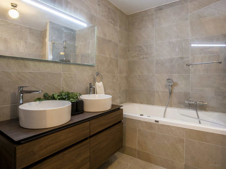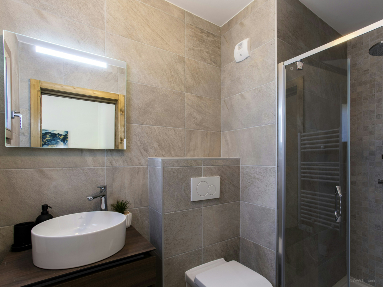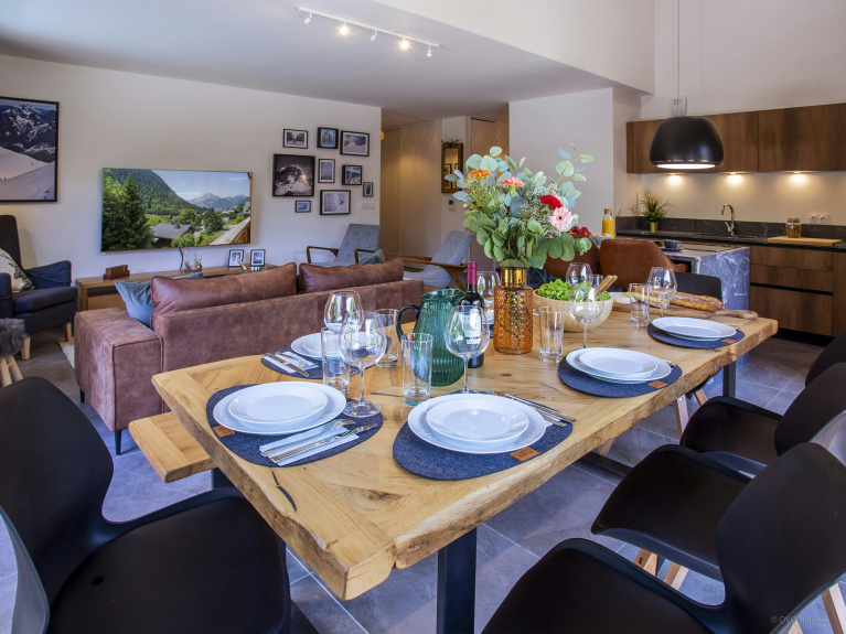 Pero las actividades tampoco están lejos. El pueblo está a sólo un kilómetro a pie, unos 15 minutos cuesta arriba (la vuelta cuesta abajo es obviamente más rápida). Una parada de autobús justo al pie del edificio permite llegar a los remontes en menos de cinco minutos. Para los huéspedes que vengan en coche, hay dos plazas de aparcamiento cubiertas.