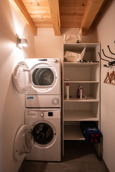 El chalet también cuenta con una sala de lavandería (lavadora y secadora) y una sala de material de esquí con secador de botas.