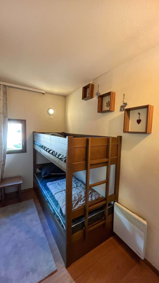 Habitación con 1 cama doble (140x190), habitación con literas (2x90).