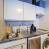 Cocina con 2 placas eléctricas, frigorífico, microondas, horno, cafetera, hervidor de agua y lavadora.