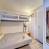 Salón con cama doble y litera individual. Televisión.