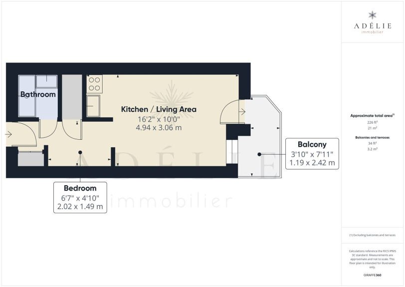 BQA019: ESTUDIO 4 PERSONAS de 22 m2 recientemente reformado, situado en la planta baja elevada. Clasificación 2*.