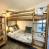 - Un dormitorio con armarios, una cama doble (140 cm) y literas (2 * 90 cm)