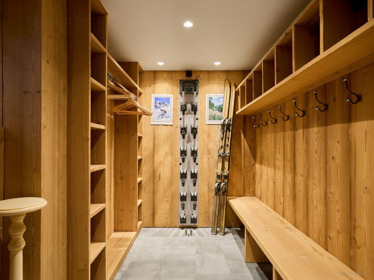 La planta baja tiene tres dormitorios adicionales, un lavadero, un garaje y una sala de esquí muy funcional.