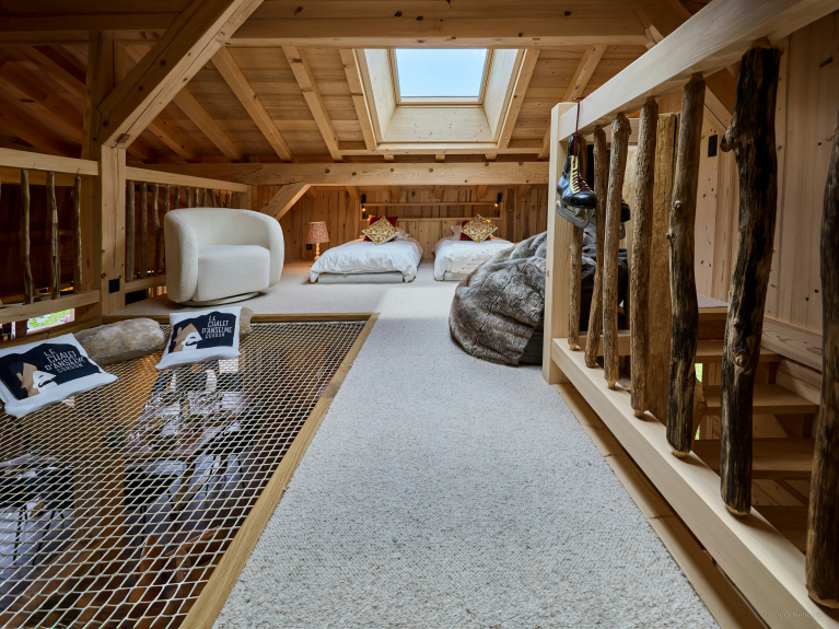 Con tres habitaciones dobles y un dormitorio para cuatro niños, esta propiedad es la opción ideal para dos familias que quieran descubrir juntas el encanto de los Alpes. A los más pequeños les encantará el altillo, convertido en sala de juegos, con redes y juguetes.