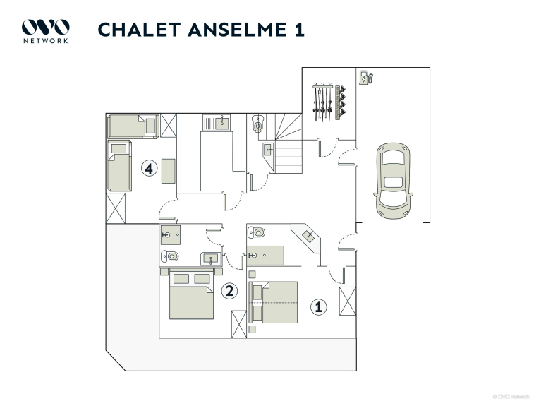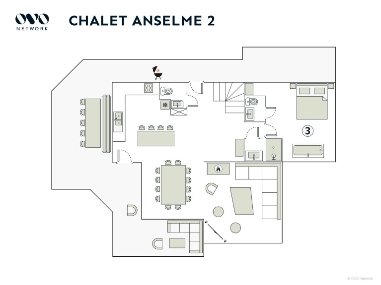 Chalet Anselme es una propiedad de dos plantas para 10 personas, con cuatro dormitorios, cuatro cuartos de baño y un altillo/sala de juegos.