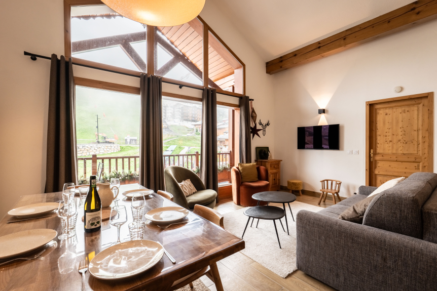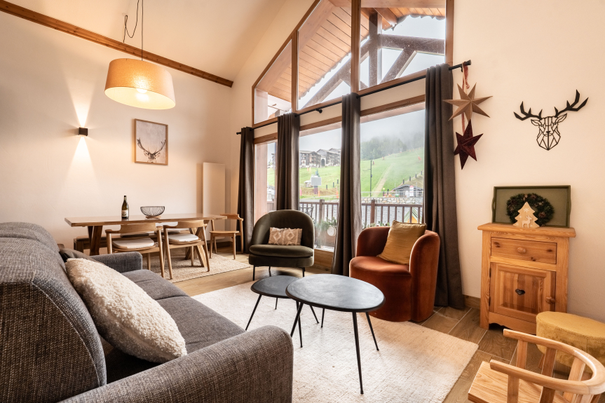 Está situado en la 2ª planta, con ascensor, y ofrece unas vistas excepcionales de las pistas y del corazón de la estación. Dispone de dos plazas de aparcamiento subterráneo y un guardaesquís individual. ¡Le garantizamos que se enamorará! Ubicación excepcional con vistas dominantes sobre el frente de nieve.