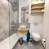 Cocina americana equipada (frigorífico y congelador, placa de inducción de dos fuegos, lavavajillas, microondas, horno, campana extractora y lavadora)