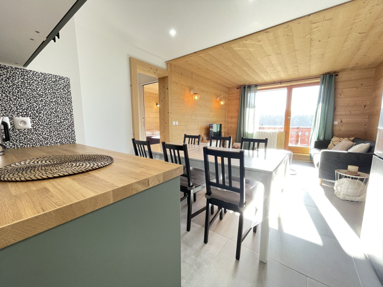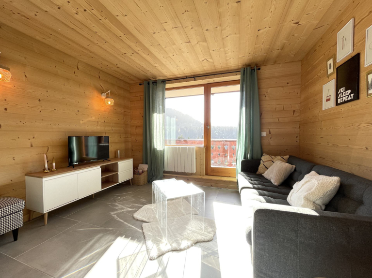 Moderno apartamento de tres habitaciones, totalmente renovado, de unos 44 m², con capacidad para un máximo de 6 personas. Tiene un balcón orientado al sur con una hermosa vista del Mont Charvin y del valle. Disfrute del sol durante todo el día.