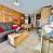 - Cocina abierta al salón: 4 placas vitrocerámicas, mini horno, microondas, lavavajillas, frigorífico, congelador pequeño.