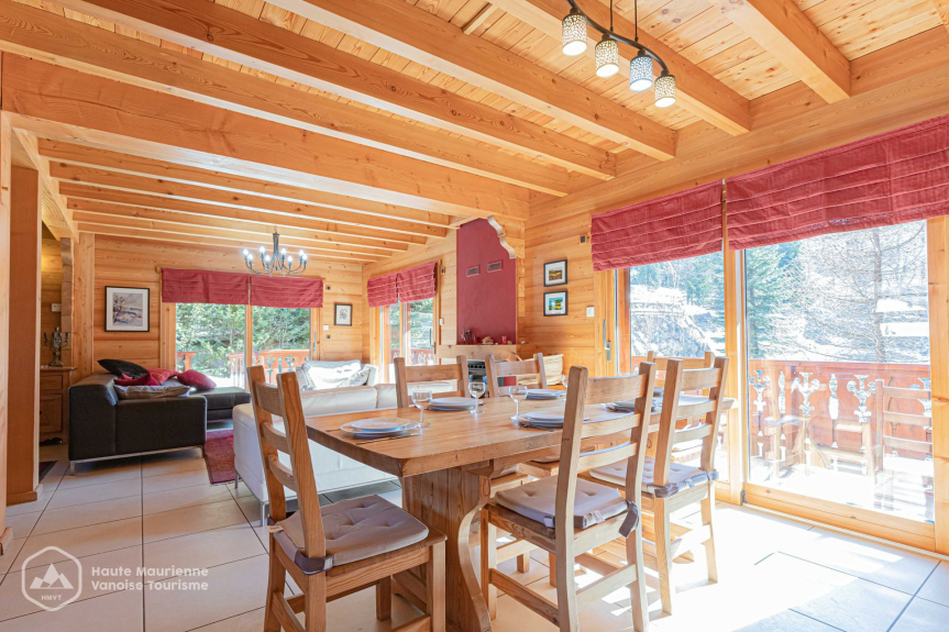 Magnífico chalet situado a 100 metros del centro de Valfréjus, espacioso y muy confortable.