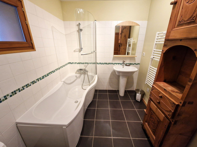 - 1 cuarto de baño con bañera grande, WC y cabina de ducha.