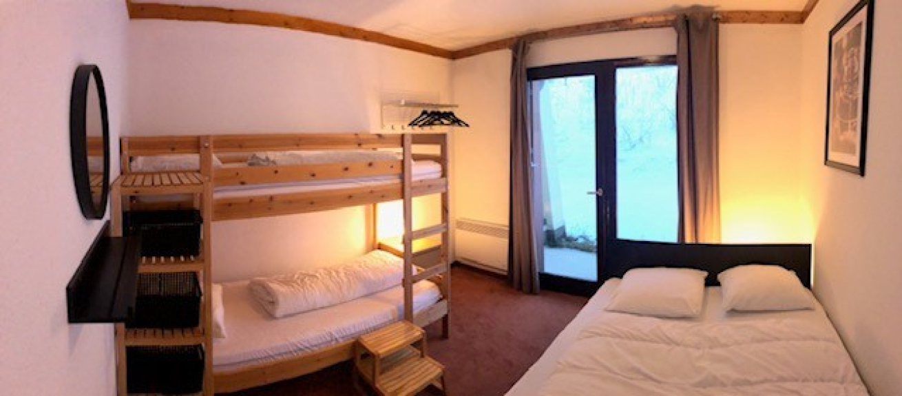 - 1 habitación grande con cama de matrimonio y 2 literas, 4 plazas en total