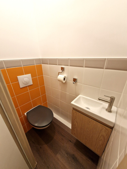 - Salón con bonita cocina renovada, lavavajillas, frigorífico, placa eléctrica, mini-horno, microondas, mesa de comedor y sala de estar con 1 cama nido para 2 personas.