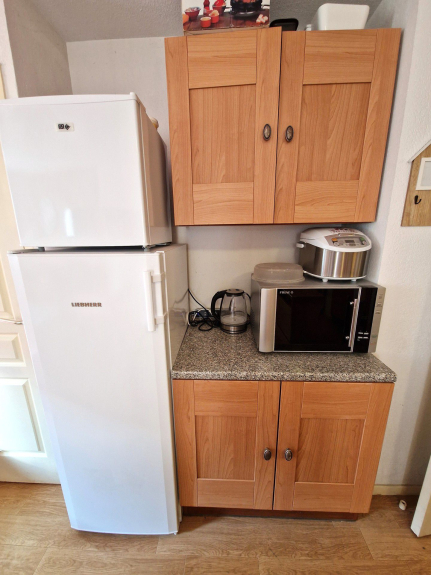 - Cocina americana con horno, 4 placas eléctricas, frigorífico grande, lavavajillas.