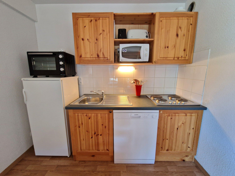 - Rincón cocina con 4 placas eléctricas, frigorífico, lavavajillas, microondas.