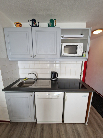 - Rincón cocina con 3 placas eléctricas, frigorífico, microondas, lavavajillas.