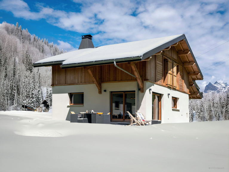 Las mayores ventajas del Chalet Ormiages se revelan en los meses de verano: un jardín grande, llano y seguro, con columpios, tobogán y mesa de ping-pong, una vista impresionante de las cumbres y la proximidad de la naturaleza alpina.