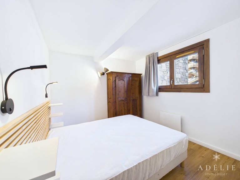 ALPA 32: Atractivo apartamento de 3 habitaciones (40m²) clasificado 3* para un máximo de 6 personas, niños incluidos. Al mismo nivel que la entrada de la residencia. En la 4ª planta desde la terraza orientada al sur con vistas panorámicas sobre el valle.