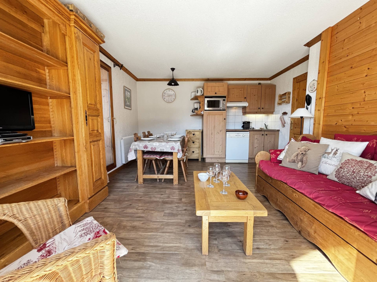 Este acogedor piso de 45 m² goza de una ubicación ideal en el corazón del pueblo, cerca de comercios y restaurantes. Ubicado en una residencia con piscina climatizada, dispone de una agradable terraza orientada al suroeste con impresionantes vistas del Mont Charvin y magníficas puestas de sol. Diseñado para alojar hasta 6 /7 personas, el piso ofrece una distribución funcional y confortable, perfecta para una estancia en familia o con amigos.