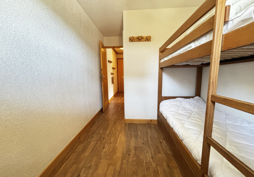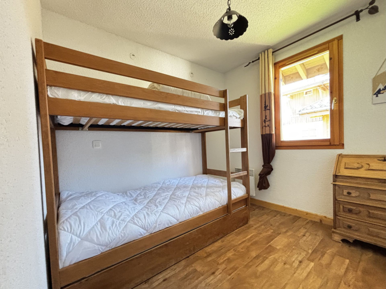 Un primer dormitorio con una litera de 2*90 cm + una cama nido de 1*90 cm y espacio de almacenamiento