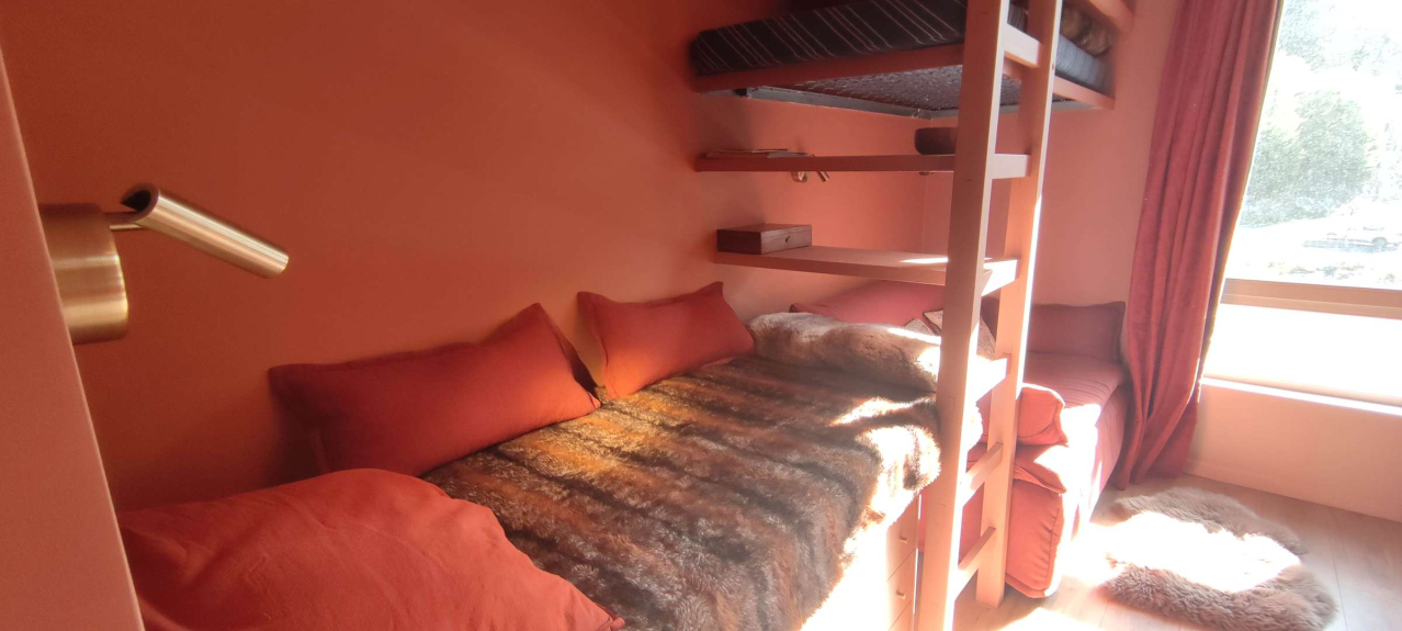 TVB19 pequeño estudio moderno y acogedor, ideal para padres e hijos, situado en la 2ª planta con ventana, orientado al este. Situado en la urbanización "Front de Neige", a pie de pistas, por encima de la Galerie Marchande y de las actividades de la estación. Salón con sofá cama (140 cm) y 2 camas individuales. Cuarto de baño WC, cocina equipada.
