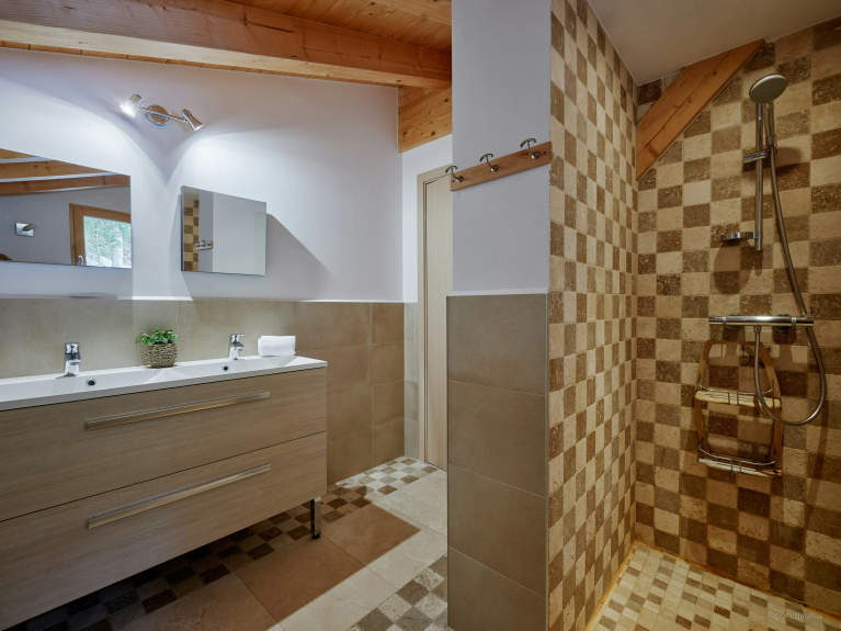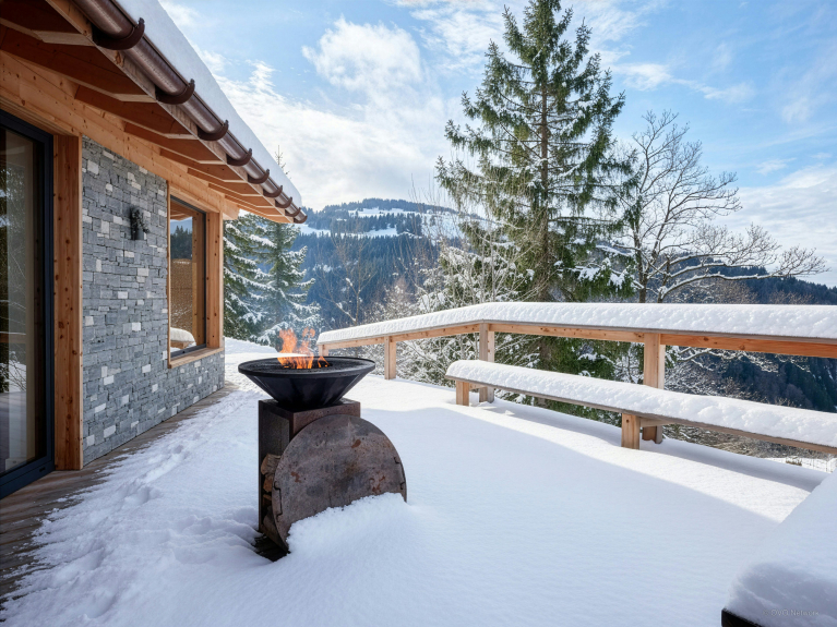 El chalet Panorea se abre generosamente hacia el exterior. Su balcón, ampliado por una terraza, se convierte en un espacio de vida en sí mismo cuando hace buen tiempo. Le encantará comer allí, o simplemente hacer una pausa para disfrutar de la vista de las cumbres.