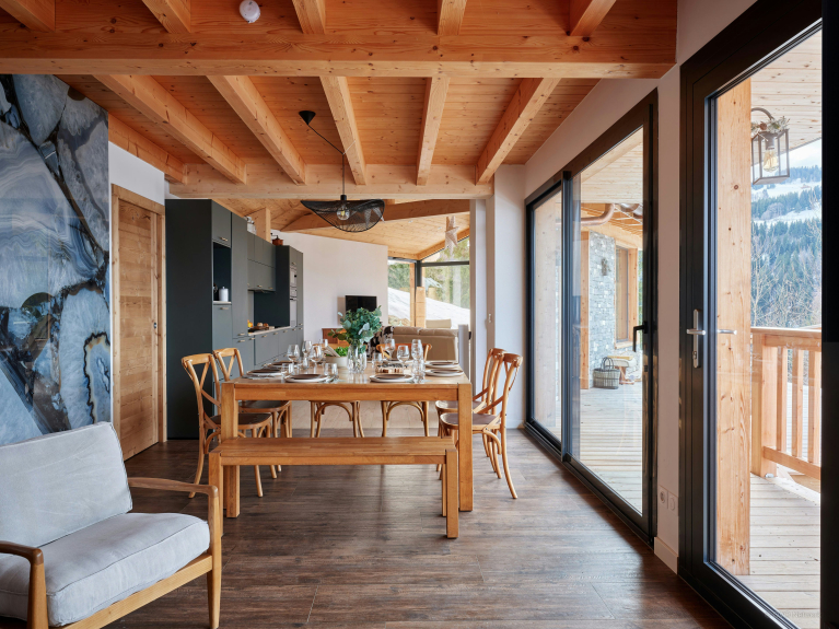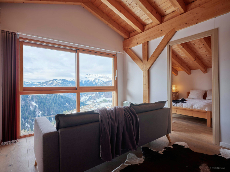 El Chalet Panorea seduce por sus vistas despejadas a los montes Aravis y sus numerosas ventanas. Tiene capacidad para ocho personas gracias a sus cuatro dormitorios y dos cuartos de baño.