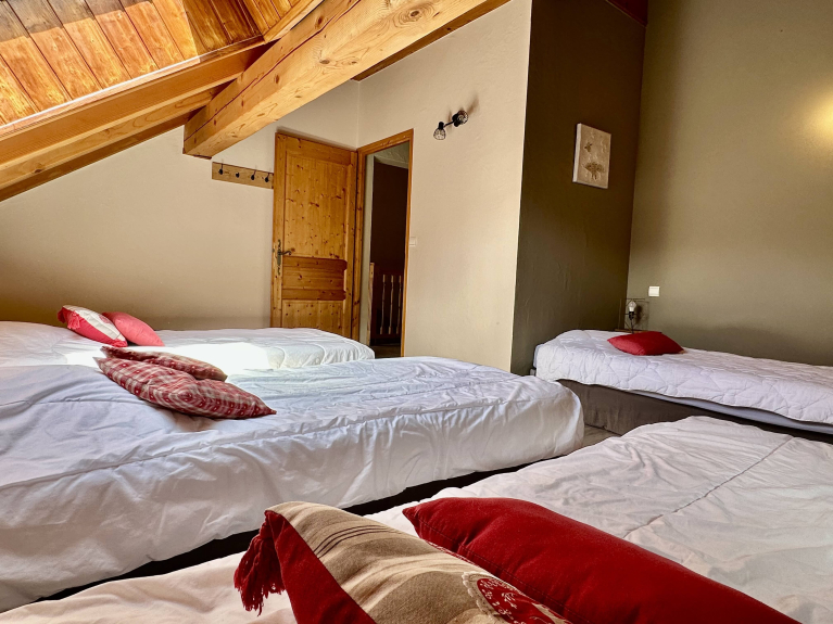 Spazioso appartamento per 14 persone con 5 camere da letto, 2 con letto matrimoniale, 1 camera con un letto matrimoniale e un letto da 90cm, 1 camera con 3 letti singoli da 90cm e 1 camera con 4 letti singoli da 90cm.