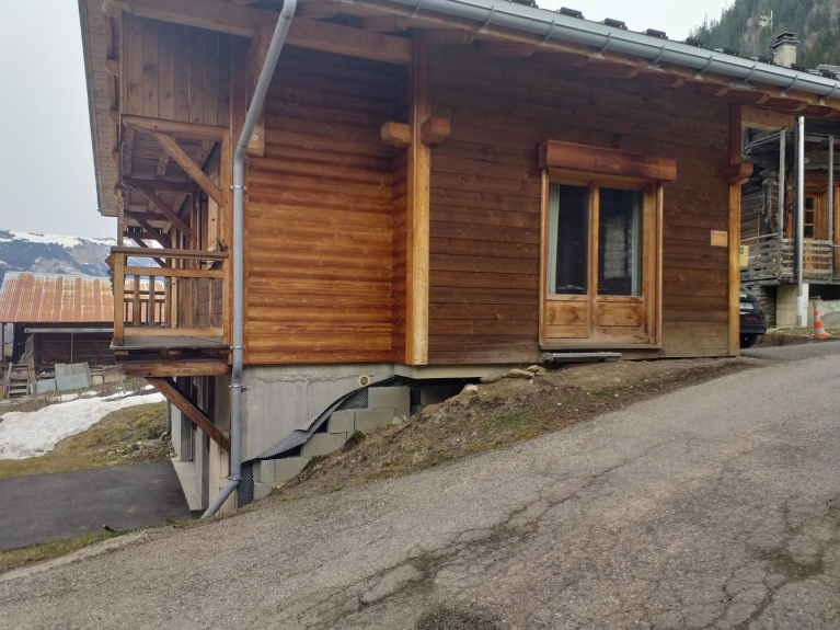 Chalet individuale in legno di nuova costruzione (2014) situato nella frazione di Le Praz in una zona tranquilla a 1 km dal centro della località di Arêches. Lo chalet è ideale per 2 coppie e 4 bambini su 2 piani: sono composti da 4 camere da letto con 2 letti 140x190 e 4 letti 90x190, un grande soggiorno-angolo cucina e schermo piatto, 2 toilette, 2 bagni, uno con vasca. Pavimento piastrellato al piano terra e pavimento in legno al primo piano. Il seminterrato è riservato a una grande parte del garage ma anche al deposito di sci in inverno e di biciclette in estate, così come una cantina e una lavanderia. I parcheggi sono disponibili intorno allo chalet, ma l'equipaggiamento invernale dell'auto è fortemente raccomandato. Chalet con WIFI