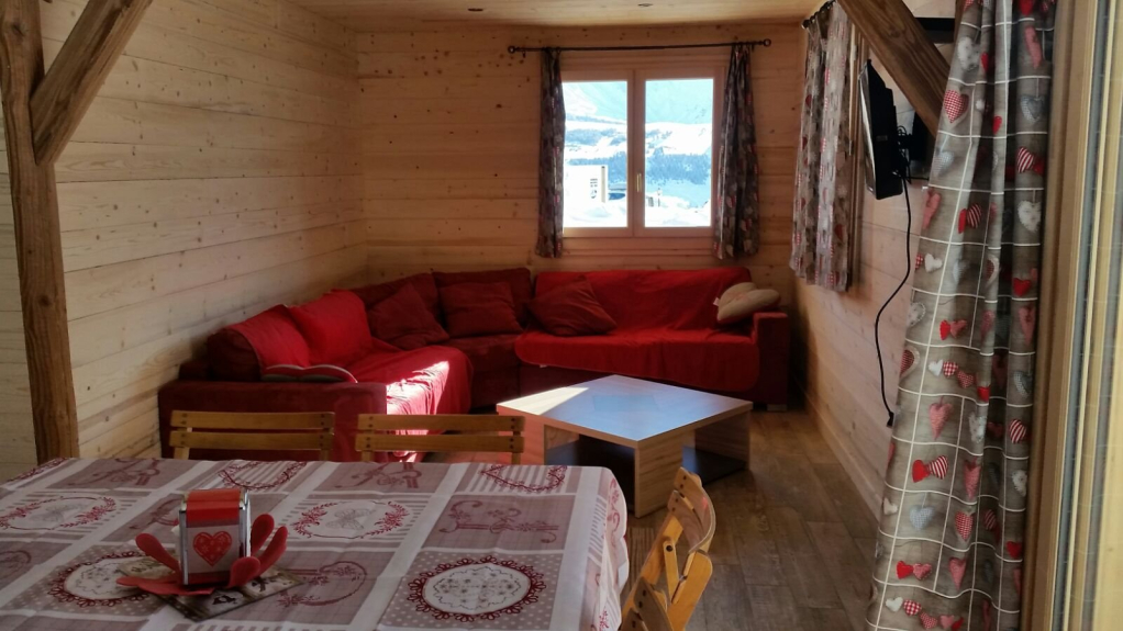 Lo chalet le Grand Cerf dispone di due appartamenti ai piedi delle piste con parcheggio privato. Cibo e negozi nelle vicinanze. Appartamento per 8 persone di 65 m2 di cui 3 camere da letto e un angolo di montagna, soggiorno, sala da pranzo, cucina